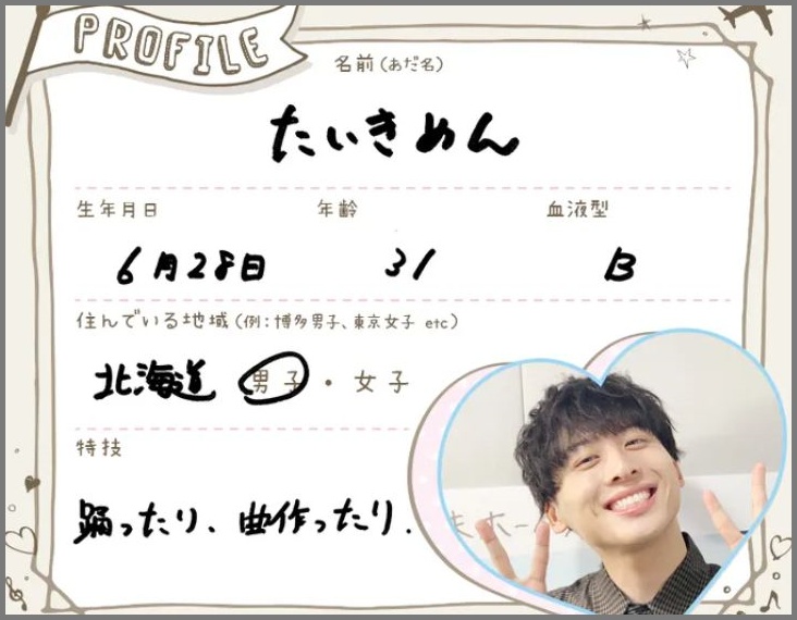 番組の出演メンバーと同じように、プロフ帳を書いた工藤大輝さん。