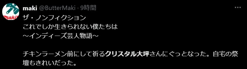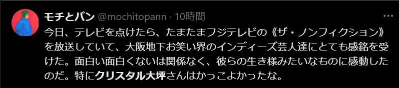 【ザ・ノンフィクション】に出演し、注目を集めているお笑い芸人「クリスタル大坪」さん。