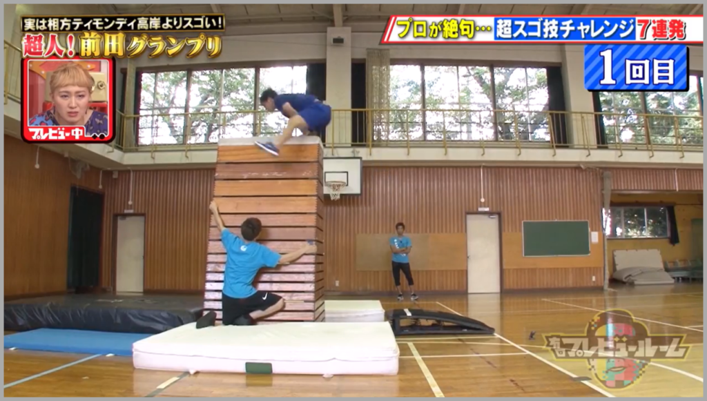 また、テレビの企画でも「跳び箱16段を一発でクリア」しています。