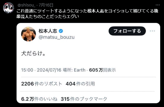 【画像】松本人志が汚らしいとネット上で話題?