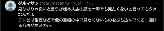 ですが、ネット上では松本人志さんのこれまでの言動などから、「見たくない」「嫌い」と感じる方が多いようです。