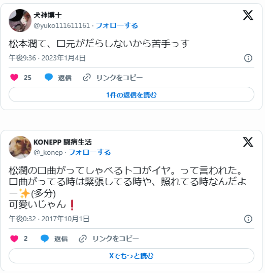 松本潤さんの口元について、ネット上ではこのような声がありました↓
