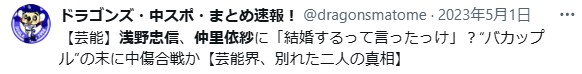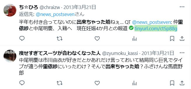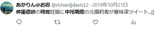 秋定麻紀子さんは仲里依紗さんと中尾明慶さんの結婚と妊娠発表を目にし下記のような内容のツイートを投稿しました↓