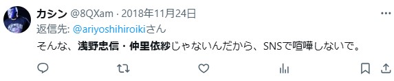 2012年10月頃、結婚に乗り気ではない浅野さんに対して仲里依紗さんは、「(結婚相手)は私じゃなくてもいいんじゃない?」とSNSで投稿しました。
