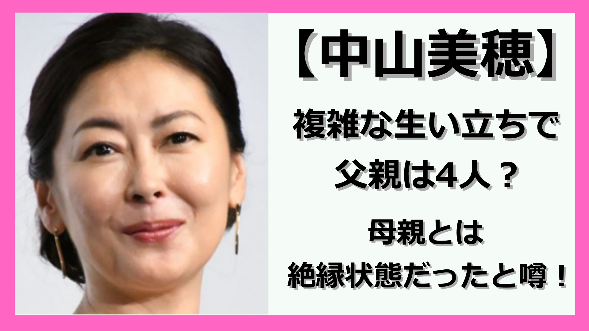 ここでは、中山美穂さんの複雑な生い立ちと父親について詳しく見ていきましょう!