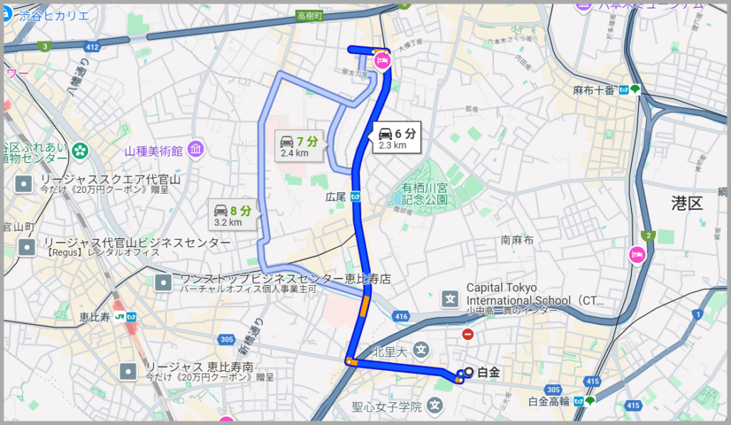二宮和也さんの自宅(港区白金)からは、車で11分の距離にあります。