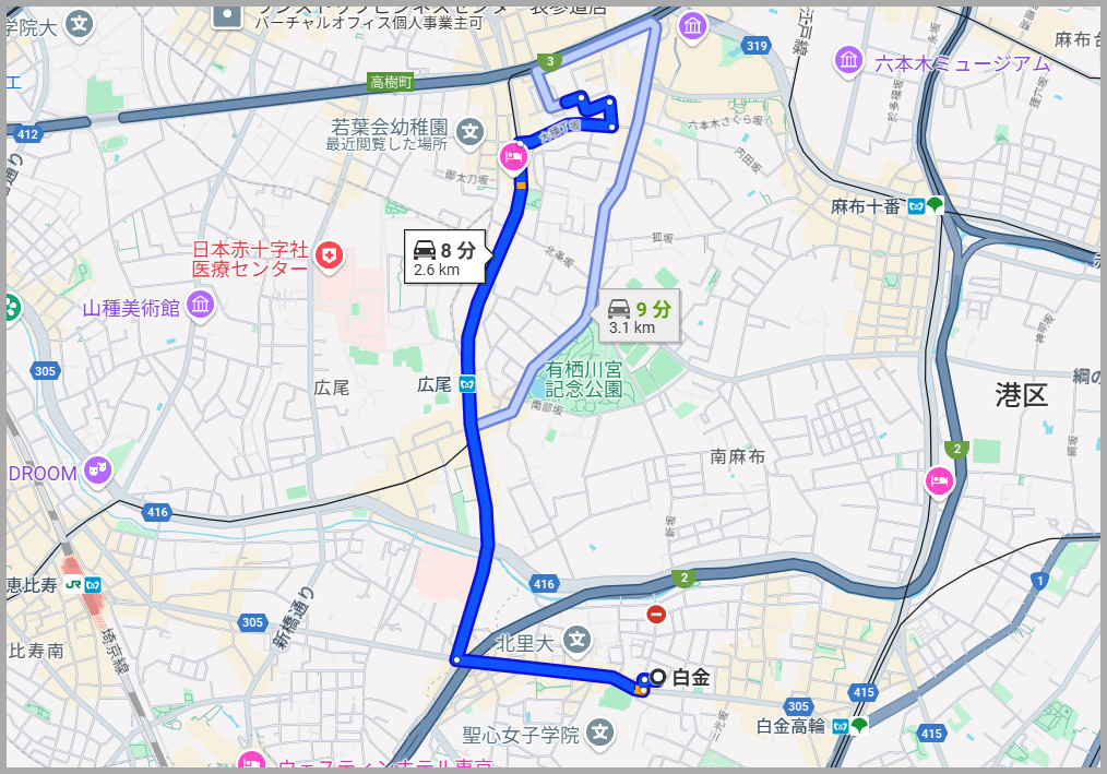 また、二宮和也さんの自宅場所(港区白金)からは、車で8分の距離にあります。