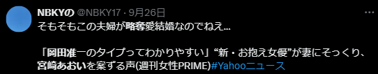 あくまでもネット上の意見ですが、お二人について「略奪婚」という声が多く見受けられます。