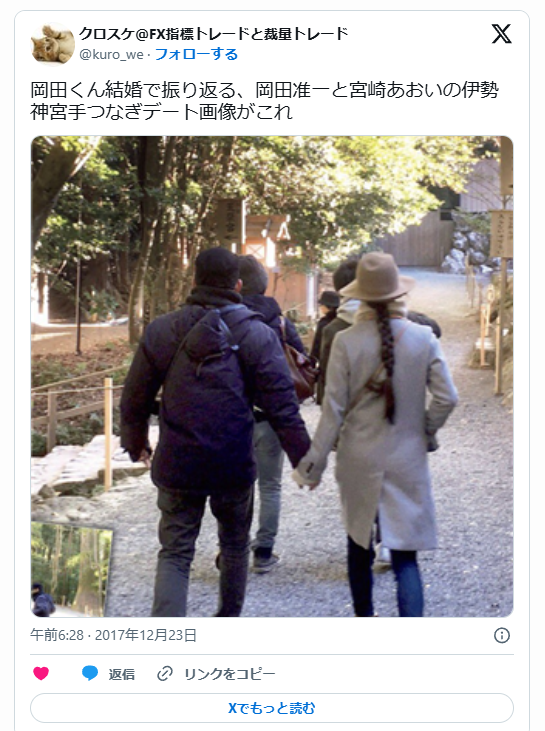 2016年末には、2人で三重県の伊勢神宮でデートしている現場をスクープされています。