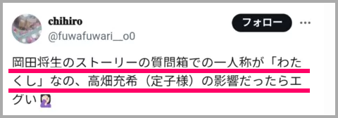 高畑さんは以前から一人称として「わたくし」を使用しており、この独特な言い回しが二人の間で共有されるようになったのかもしれません。