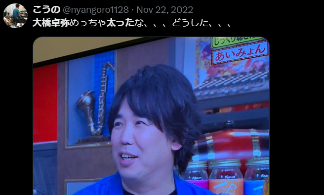 そんな大橋卓弥さんが、久しぶりにテレビ出演した際、「太った」「太り過ぎ」という声があがったそうです。