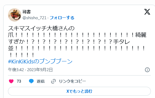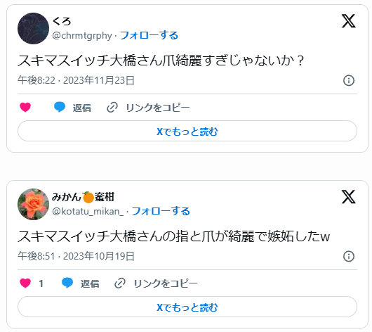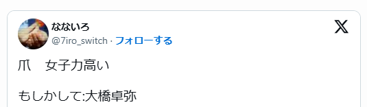 このように、大橋卓弥さんの「爪」に対して、絶賛の声が多数見受けられました。
