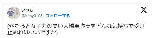 あまりにも大橋さんの女子力が高すぎて、ファンも戸惑っている雰囲気ですね~。