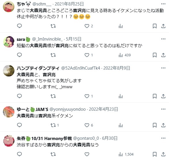大森元貴さんの顔の特徴は若干アヒル口っぽいところだと考えられるので口元が似てると全体的にも似てくるのでしょうね。