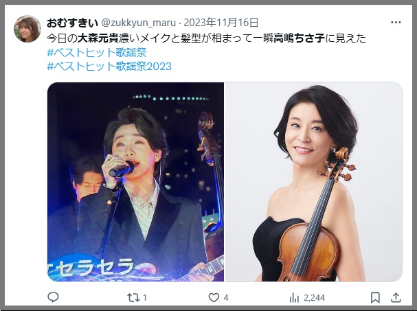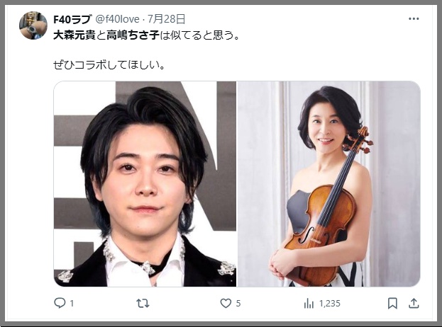 大森元貴さんと高嶋ちさ子さんが似てるというイメージが湧きませんが、画像で比較してみますと、意外と似ています。