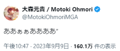 パフォーマンスに対して、4分後に、大森元さんが自身のSNSに意味深なポストを投稿していました。