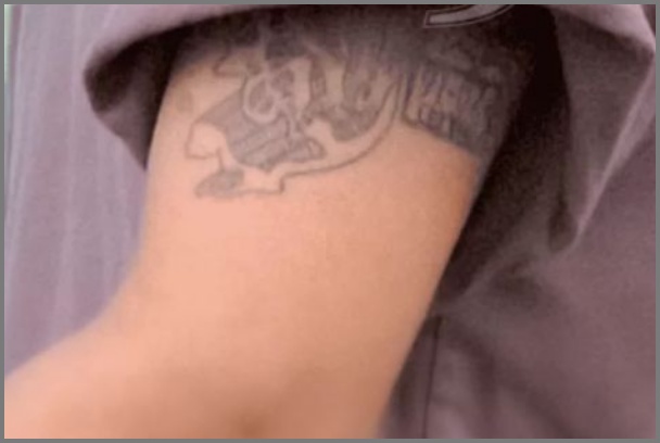 写真を見る限り、左腕にはびっしりとタトゥーが入っており、それが肩までつながっているようです。