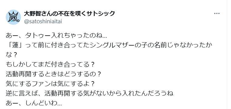 そんな中、以前報道された大野智さんの「タトゥー画像」について、再び注目を集めているようですね。