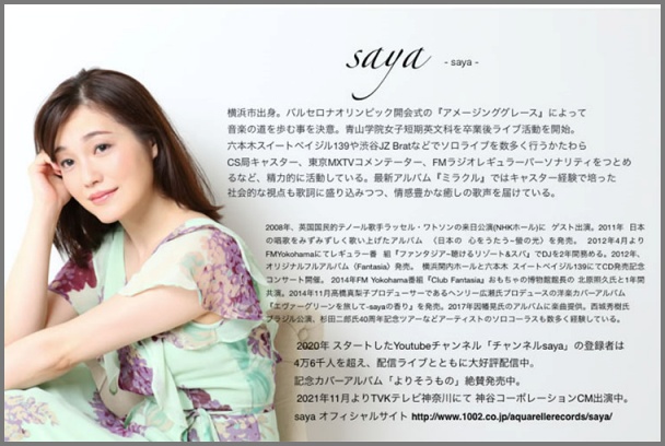 「29日はsaya springコンサート銀座7thスタジオでした。日頃の言論活動で積み上げた様々な想いが、歌に自然に着実にこもっていて、こういう成長の過程もあるんだな、、と実感して、嬉しかったです。最初に一緒に音を録ったのが2006年の暮れだったから、もう20年目になってるんだよね。」