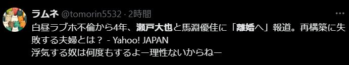 以前、瀬戸大也さんの不倫騒動がありましたが、離婚しなかったことで驚きの声があがっていましたよね。