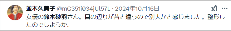 そんな鈴木砂羽さんですが、度々「顔が変わった」「整形している」という声が上がっています。