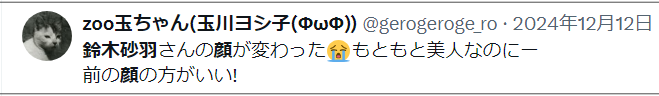 ですが、人気者の鈴木砂羽さんに「顔が変わった」という噂が度々浮上。