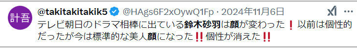 鈴木砂羽さんに整形疑惑が浮上した理由は、以下の通りです。