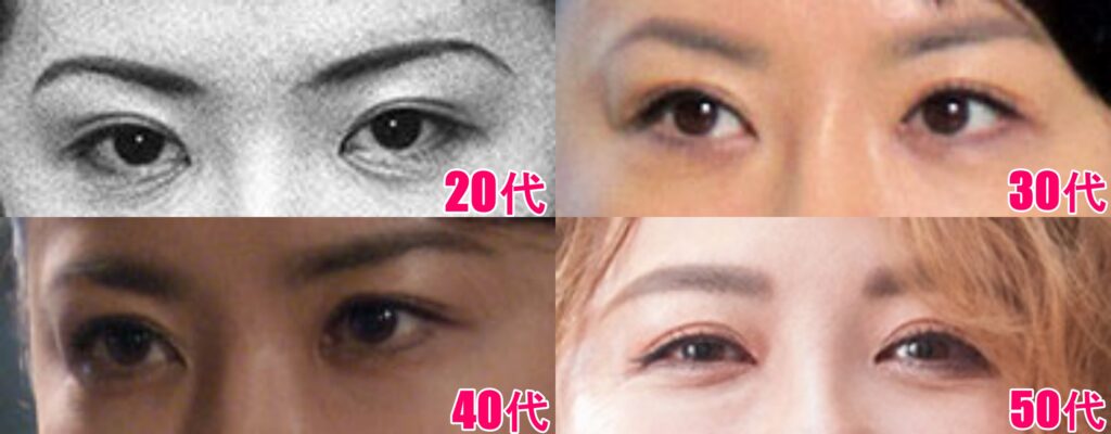加齢とメイクの仕方で、目元の印象が大きく変わっていると思われます。
