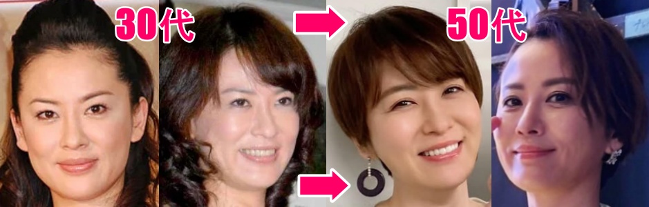 30代の頃と比べると、眉毛の形や目元のメイクが変わっています。