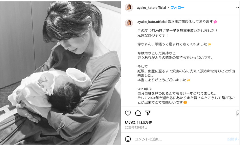 2023年12月には二人の間に第一子が誕生し、新たな家族としてのスタートを切っています。