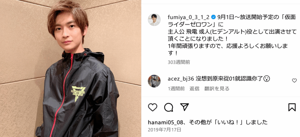 2019年には特撮テレビドラマ『仮面ライダーゼロワン』にて、飛電或人 / 仮面ライダーゼロワン役で主演を務めました。