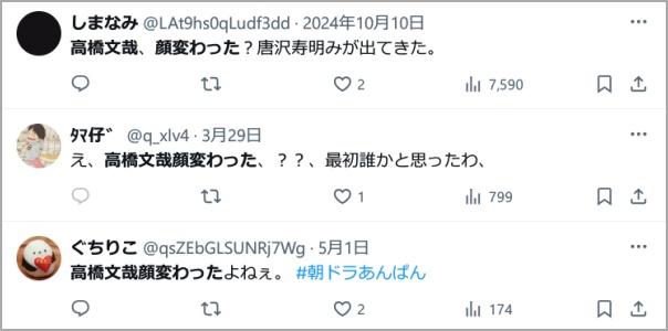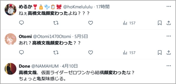 そんな高橋文哉さんですが、度々「顔が変わった」「別人級」という声が上がっています。