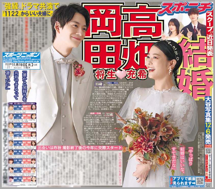2024年11月19日、高畑充希さんと岡田将生さんは結婚を発表しました。