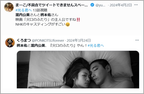 Xでは「『火口のふたり』コンビが大河に出てる」と話題になりました。
