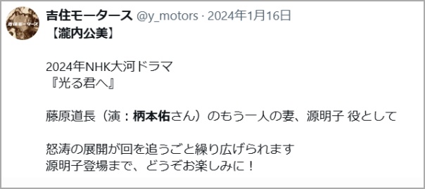 2024年1月7日から12月15日まで放送されたNHK大河ドラマ「光る君へ」