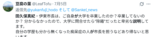 いずれにしても、公人である市長が自身の学歴について曖昧な説明しかできない状況は、市民の信頼を大きく損なう結果となっています。