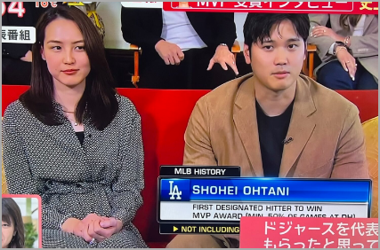 【画像】大谷翔平のMVP受賞での田中真美子さんの姿が話題!