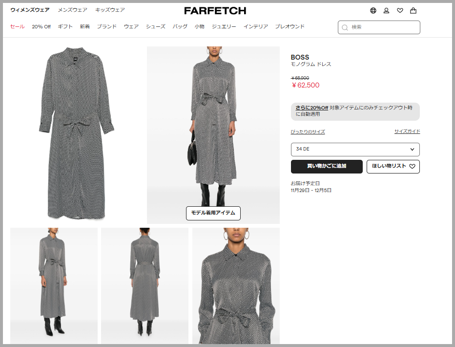 BOSSのワンピースは、以下のサイトから購入できるようです↓