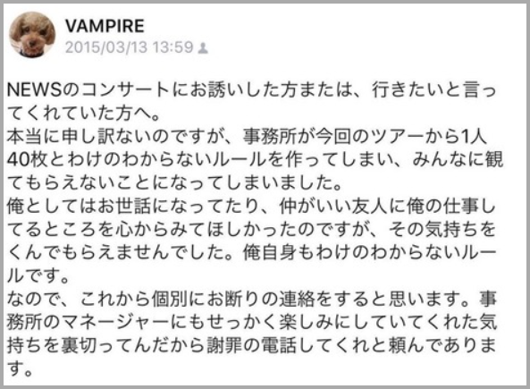 - 3月から始まるコンサートツアー『NEWS LIVE TOUR 2020 STORY』を控えていたため、このタイミングでの流出に対して「プロ意識がない」といった批判も寄せられました。