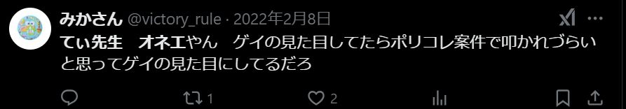 そんなてぃ先生ですが、「オネエではないか」という疑惑が浮上しているようです。