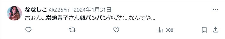 常盤貴子さんは、「顔がパンパン」「頬がふっくらしている」と言われています。