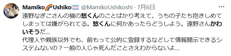 《猫を本当に愛する人だったから、猫の事は本人が1番気がかりだろう》