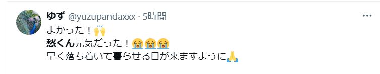 「ご報告です。あまり詳細についてはお伝えができないのですが、愁くんは無事に保護されており、元気とのことです。ご協力いただいた皆様に感謝申し上げます。安堵で思わず涙が出てしまった」