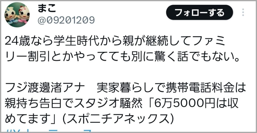 そんな渡邊渚さんに、世間から「お嬢様育ちなのでは?」という声が上がっていました↓