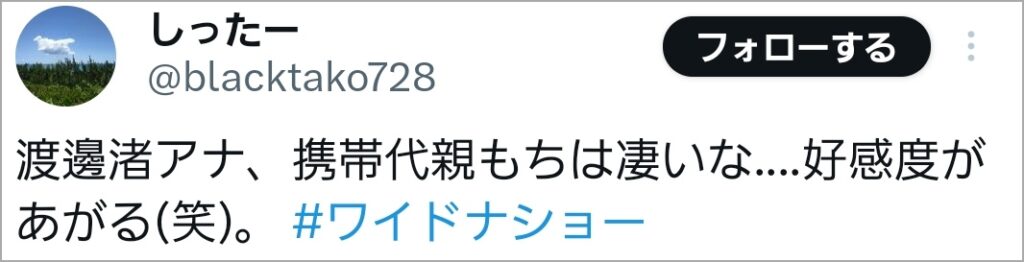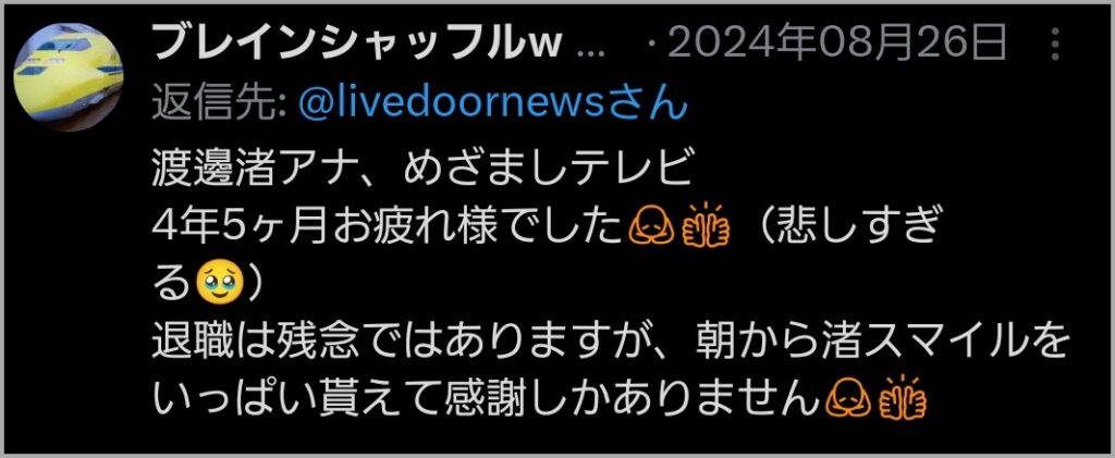 渡邊渚さんへの好評とも思える、コメントが多数見つかりました。