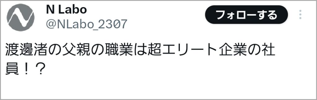 【衝撃】渡邊渚がお嬢様育ちと話題?