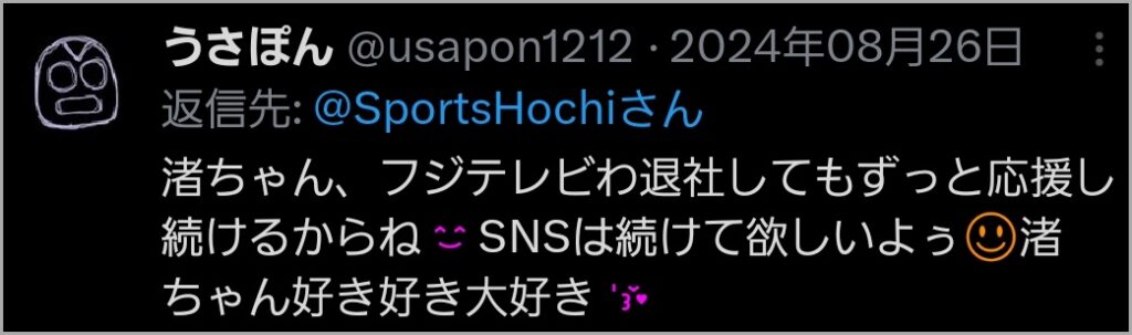 そして、2024年8月末に「本人の希望」という理由からフジテレビを退社すると発表しました。
