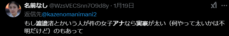 このことから、渡邊渚さんがお嬢様で実家が金持ちだと思っている方は多いということでしょう。