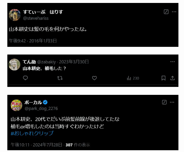 そのため世間では、山本耕史さんの植毛疑惑まで浮上しています。