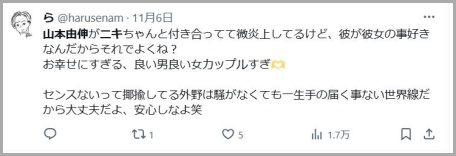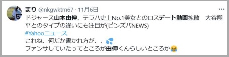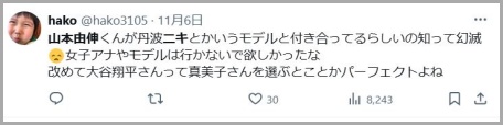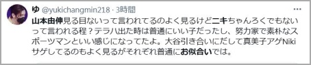 お二人はまだ熱愛疑惑の段階ですが、ニキさんと山本由伸さんを応援する声も多くあがっていました。